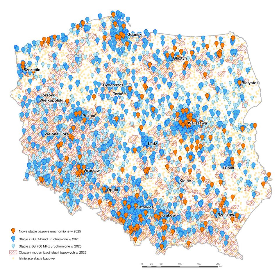 W ubiegłym roku operatorowi przybyło 165 nowych stacji bazowych, ale liczba ta nie obejmuje nadajników uruchomionych w miejsce tych, które z różnych przyczyn trzeba było wyłączyć. Najwięcej stacji pojawiło się w województwach: mazowieckim, dolnośląskim, śląskim i warmińsko-mazurskim. Wszystkie stacje nadają sygnał LTE, a część z nich działa także w technologii 5G w paśmie C i 700 MHz.