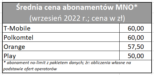 Analitycy giełdowi nie kryją rozczarowania tym, że operatorzy komórkowi w obliczu wysokiej inflacji i spadku tempa wzrostu gospodarczego, a być może i recesji, nie decydują się na radykalne ruchu w cenach abonamentów. – Jesteśmy zaskoczeni zachowawczością polskich operatorów w zakresie wyraźnego podnoszenia cen – napisali analitycy Haitong Bank we wrześniowym raporcie o Orange Polska.