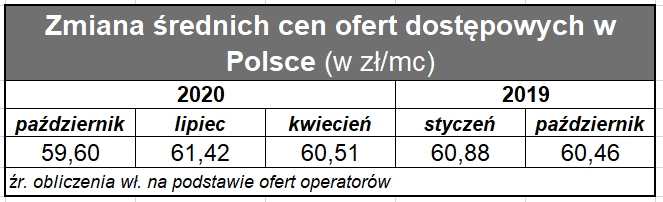 Opracowany w październiku indeks cen usług szerokopasmowych spadł nieznacznie w porównaniu do poprzedniego okresu, ale to głównie efekt pojawienia się nowego, agresywnego gracza na rynku dostępowym. Niemniej choć do tej pory obserwowaliśmy, powolny, ale stały wzrost średnich cen, to posunięcia kilku ISP stawiają znak zapytania, czy tak będzie dalej?