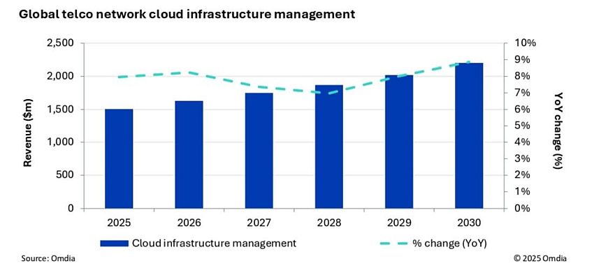 Globalne wydatki na infrastrukturę i oprogramowanie chmurowe w sieciach telekomunikacyjnych wzrosną z 17,4 mld dolarów w 2025 r. do 24,8 mld dol. w 2030 r. – wynika z najnowszego raportu Omdia Telco Network Cloud Market Tracker – 2025 Annual Forecast. To oznacza średnioroczny wzrost (CAGR) na poziomie 7,3 proc.