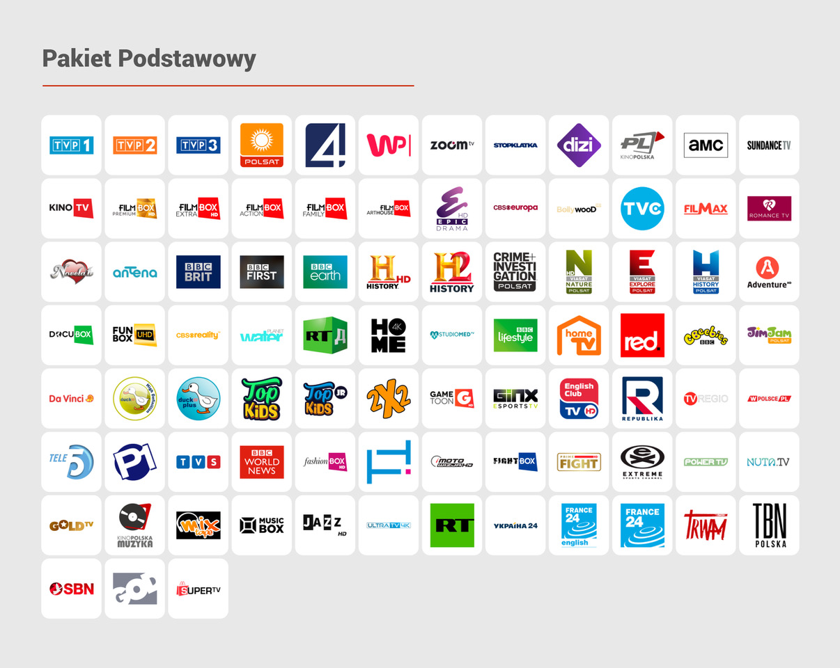 Telewizja w modelu OTT oferowana będzie w trzech wariantach – w Pakiecie Powszechnym, Pakiecie Start i Pakiecie Podstawowym, które różnią się ceną oraz liczbą dostępnych kanałów na żywo.