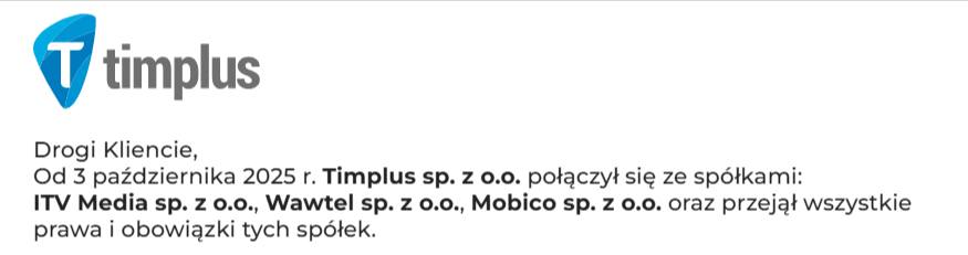 Wcześniej w październiku 2025 r. Timplus informował, że połączył się z innymi spółkami przejętymi przez Orange: Wawtel, ITV Media z Łowicza oraz Mobico i przejął wszystkie prawa i obowiązki tych spółek.