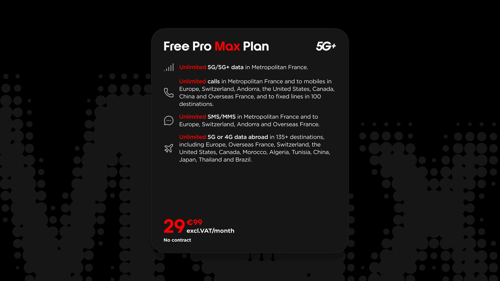 Operator posunięcie to określa jako rewolucję, ogłaszając, że Free Max to pierwszy plan mobilny z nielimitowanym transferem danych we Francji i ponad 135 lokalizacjach na całym świecie w cenie zaledwie 29,99 euro miesięcznie i tylko 19,99 euro miesięcznie dla abonentów Freebox.