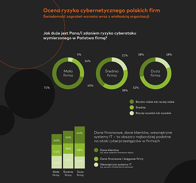 Badanie pokazuje wyraźną różnicę w podejściu do cyberbezpieczeństwa. Duże i średnie organizacje są bardziej świadome zagrożeń i lepiej przygotowane systemowo, podczas gdy małe firmy często nie postrzegają cyberataków jako istotnego ryzyka.