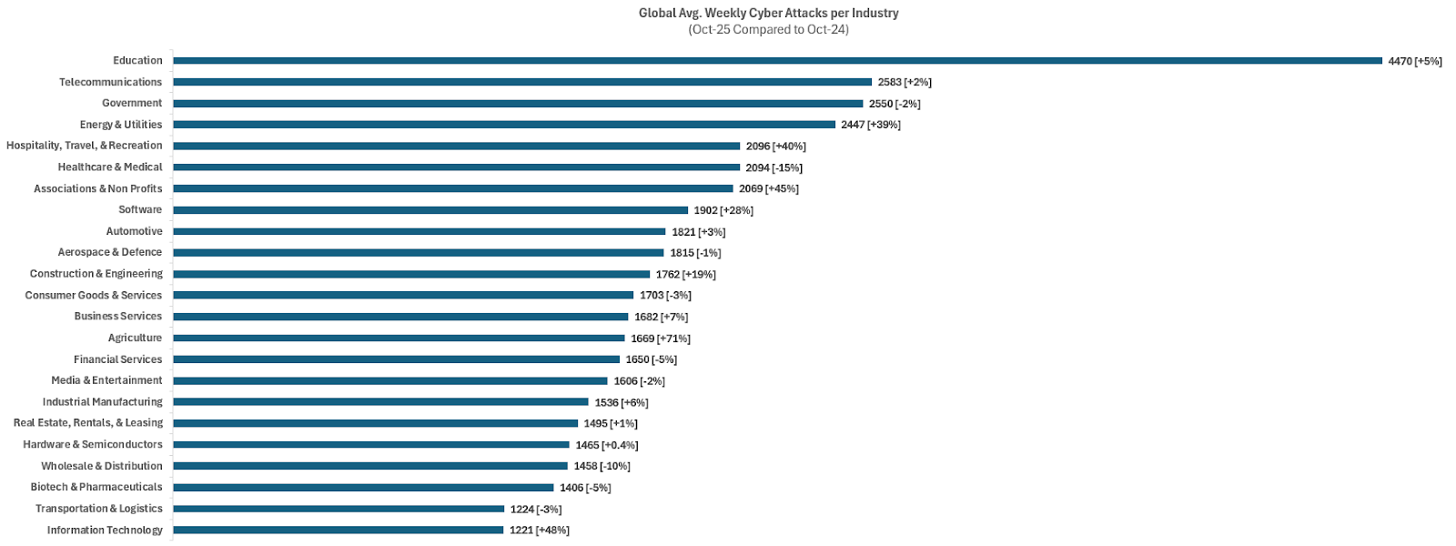 Telekomunikacja pozostaje w ścisłej czołówce branż najbardziej narażonych na cyberataki. W światowej klasyfikacji co prawda niezmiennie dominują edukacja i badania – 4 470 ataków tygodniowo na organizację (+5 proc. r/r), ale zaraz za nią jest telekomunikacja – 2 583 ataki (+2 proc. r/r) oraz administracja publiczna – 2 550 ataków (–2 proc. r/r). Na szczególną uwagę zasługuje sektor HoReCa i turystyczny, gdzie liczba incydentów wzrosła aż o 40 proc. r/r, co wskazuje na przenoszenie się cyberprzestępczości w kierunku usług turystycznych i hotelarskich – wynika z najnowszej analizy firmy Check Point Research.